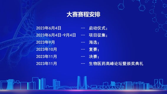 预计9月份进行大赛海选,10月份进行复赛,11月份进行决赛,并同步举办生物医药产业知识产权高峰论坛暨大赛颁奖典礼典。